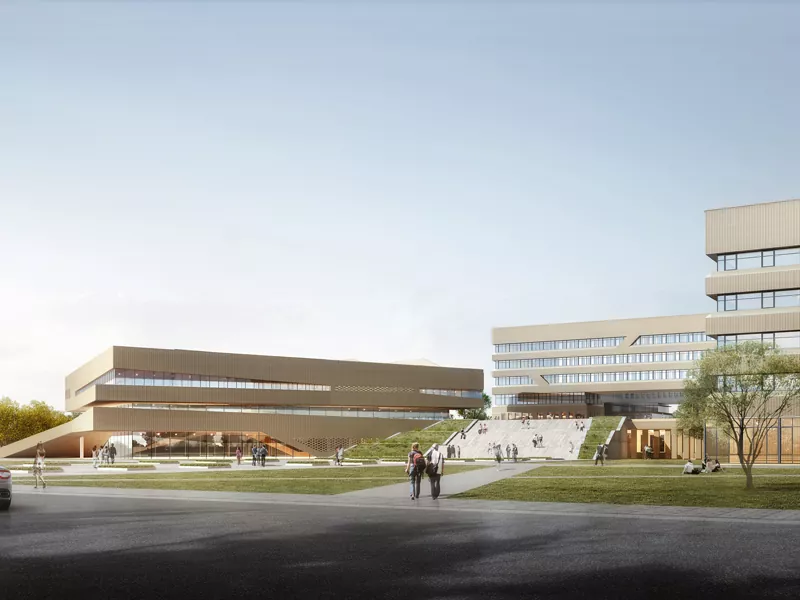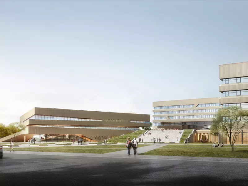 រចនាសម្ព័នដែក EIHE គឺជាក្រុមហ៊ុនផលិត និងផ្គត់ផ្គង់អគារអប់រំដែកនៅក្នុងប្រទេសចិន។ យើងមានឯកទេសក្នុងអគារសិក្សាដែកសម្រាប់ 20 ឆ្នាំមកហើយ។ អគារសិក្សារចនាសម្ព័ន្ធដែក prefabricated គឺជាអគារសិក្សាដែលសាងសង់ដោយប្រើស៊ុមដែក prefabricated ជាការគាំទ្ររចនាសម្ព័ន្ធចម្បង។ វិធីសាស្រ្តសាងសង់នេះពាក់ព័ន្ធនឹងការផ្គុំធាតុផ្សំនៃអគារនៅក្រៅកន្លែង ក្រោមលក្ខខណ្ឌរោងចក្រដែលគ្រប់គ្រង ដែលត្រូវបានដឹកជញ្ជូនទៅកន្លែង និងប្រមូលផ្តុំ។ អគារសិក្សារចនាសម្ព័ន្ធដែក Prefabricated ផ្តល់នូវអត្ថប្រយោជន៍ជាច្រើន រួមមានៈ ពេលវេលាសាងសង់រហ័ស៖ ស៊ុមដែកដែលត្រៀមរួចជាស្រេចអាចផលិត និងផ្គុំបានយ៉ាងឆាប់រហ័ស។ នេះអាចកាត់បន្ថយពេលវេលាសាងសង់រហូតដល់ 50% បើប្រៀបធៀបទៅនឹងវិធីសាស្រ្តសំណង់បែបបុរាណ។ ធន់ និងកម្លាំង៖ ដែកគឺជាសម្ភារៈសំណង់ដ៏រឹងមាំបំផុត និងប្រើប្រាស់បានយូរបំផុត ដែលធ្វើឱ្យវាល្អសម្រាប់អគារសិក្សាដែលត្រូវការធន់នឹងការប្រើប្រាស់ធ្ងន់។ ប្រសិទ្ធភាពនៃថ្លៃដើម៖ ការសាងសង់មុនអាចសន្សំថ្លៃលើកម្លាំងពលកម្ម សម្ភារៈ និងការរៀបចំកន្លែង ធ្វើឱ្យអគារសិក្សាដែលធ្វើពីដែក prefabricated ជាជម្រើសដែលមានប្រសិទ្ធភាពក្នុងការចំណាយ។ និរន្តរភាព៖ អគារសិក្សាដែលមានរចនាសម្ព័ន្ធដែក Prefabricated អាចត្រូវបានរចនាឡើងដើម្បីសន្សំសំចៃថាមពល ដោយមានលក្ខណៈពិសេសដូចជា អ៊ីសូឡង់ ប្រព័ន្ធ HVAC ដែលមានប្រសិទ្ធភាពខ្ពស់ និងភ្លើងបំភ្លឺធម្មជាតិ។