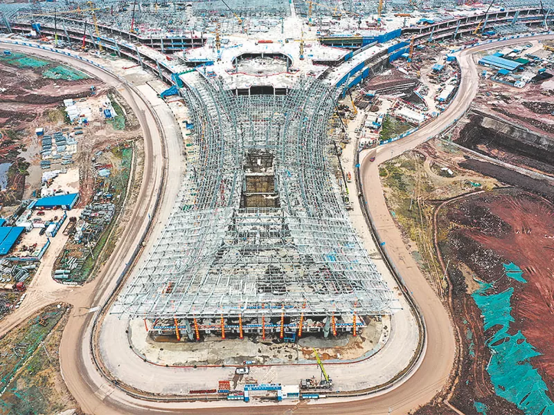 ស្ថានីយអាកាសយានដ្ឋានអាកាសយានដ្ឋានដែកថែបទទួលយកទំពាំងបាយជូរដែលមានទំហំធំទូលាយឬសំបកដែលបានធ្វើឱ្យប្រសើរឡើងដើម្បីទទួលបានកន្លែងបើកចំហរឈរដែលគ្មានជួរ។ ស៊ុមដែកថែបស្រាល ៗ របស់ពួកគេផ្សំជាមួយជញ្ជាំងវាំងននកញ្ចក់ឬមេភ្នំបោលមេភ្នំបោលអតិបរិមានិងកាត់បន្ថយការប្រើប្រាស់ថាមពល។ គ្រឿងបន្លាស់ដែលបានសាងសង់ឡើងត្រូវបានផលិតនៅក្នុងរោងចក្រហើយបានជួបប្រជុំគ្នានៅនឹងកន្លែងដែលធ្វើឱ្យខ្លីនូវរយៈពេលសាងសង់និងកាត់បន្ថយផលប៉ះពាល់លើប្រតិបត្តិការអាកាសយានដ្ឋាន។ ទ្រព្យសម្បត្តិដែលមានភាពរឹងមាំខ្ពស់និងរញ្ជួយដីមានភាពធន់ទ្រាំនឹងដែកថែបអាចទប់ទល់នឹងខ្យល់បក់ខ្លាំងនិងការរញ្ជួយដី។ រាងកោងដែលមានរាងកោងផ្តល់ឱ្យអគារមានអារម្មណ៍ទាន់សម័យទំនើបនិងបច្ចេកវិទ្យាហើយបច្ចេកវិទ្យា BIM ត្រូវបានប្រើដើម្បីបង្កើនប្រសិទ្ធភាពសមាហរណកម្មធ្យូងថ្មនិងប្រព័ន្ធថែទាំឆ្លាតវៃ។